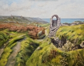 From an original oil painting of the Cornish Coast featuring the ruins of mine buildings around Levant.